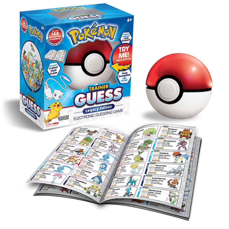 Test your Pokémon knowledge with Trainer Guess! Just think of a Pokémon and answer the questions. Trainer Guess will figure out what Pokémon you're thinking of! No reading or buttons are required to play, simply speak to the Poké Ball and it will understand you and speak back using speech recognition! This new 25th Anniversary Legacy Edition is a special mix of all Pokémon!