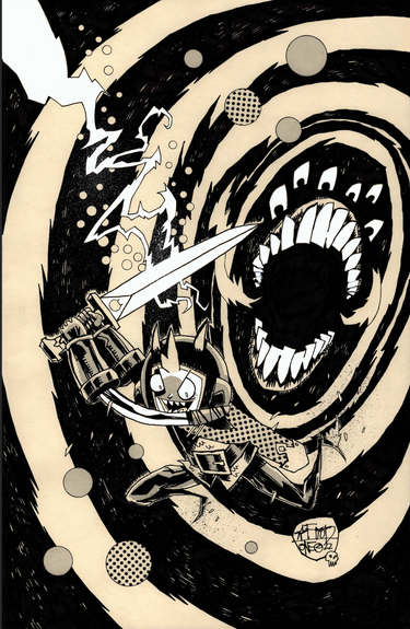 Quested fuses the attitude of Hellboy and the fantasy-adventure spirit of Legend of Zelda as it follows the questing misadventures of pawn shop owner and morally ambiguous hero-for-hire, Jinx, through a world filled with lizard henchmen, dungeon-bosses, and unicorn burgers!