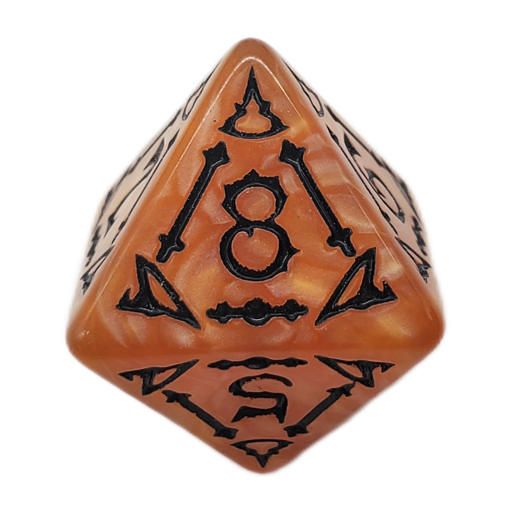 Introducing the Rune Dice Set: All Hallows Eve from Old School Dice. These orange dice with black runes embody the spirit of All Hallows Eve and are sure to be the talk of your gaming table. Each die is meticulously hand-checked to ensure the highest quality. Old School Dice is not just a brand, it's a promise of an elevated gaming experience. Let our dice guide your adventure.