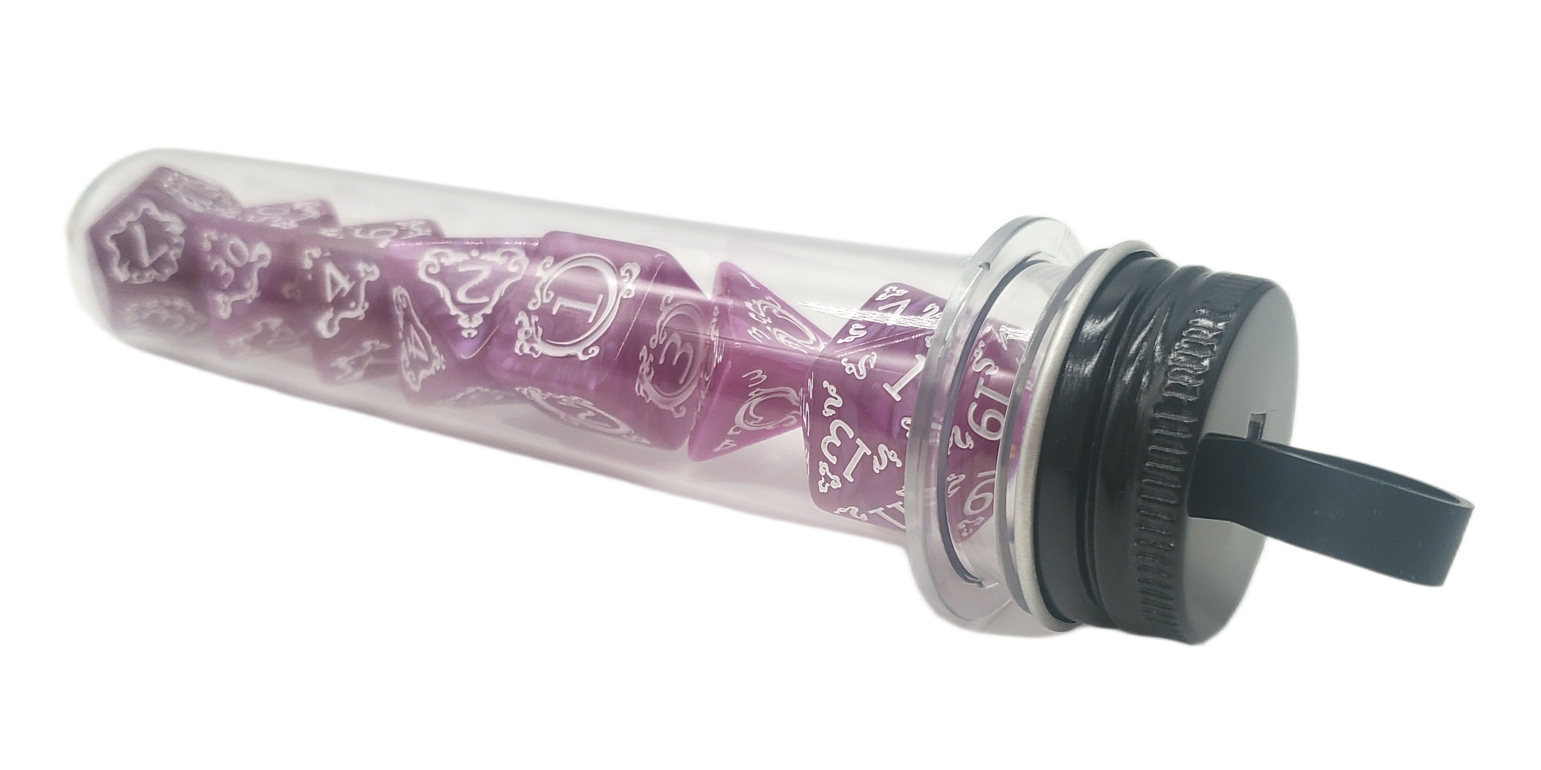 Home DnD PG Dice Set: Rune Dice - Coiled Serpent - Orchid w/ White